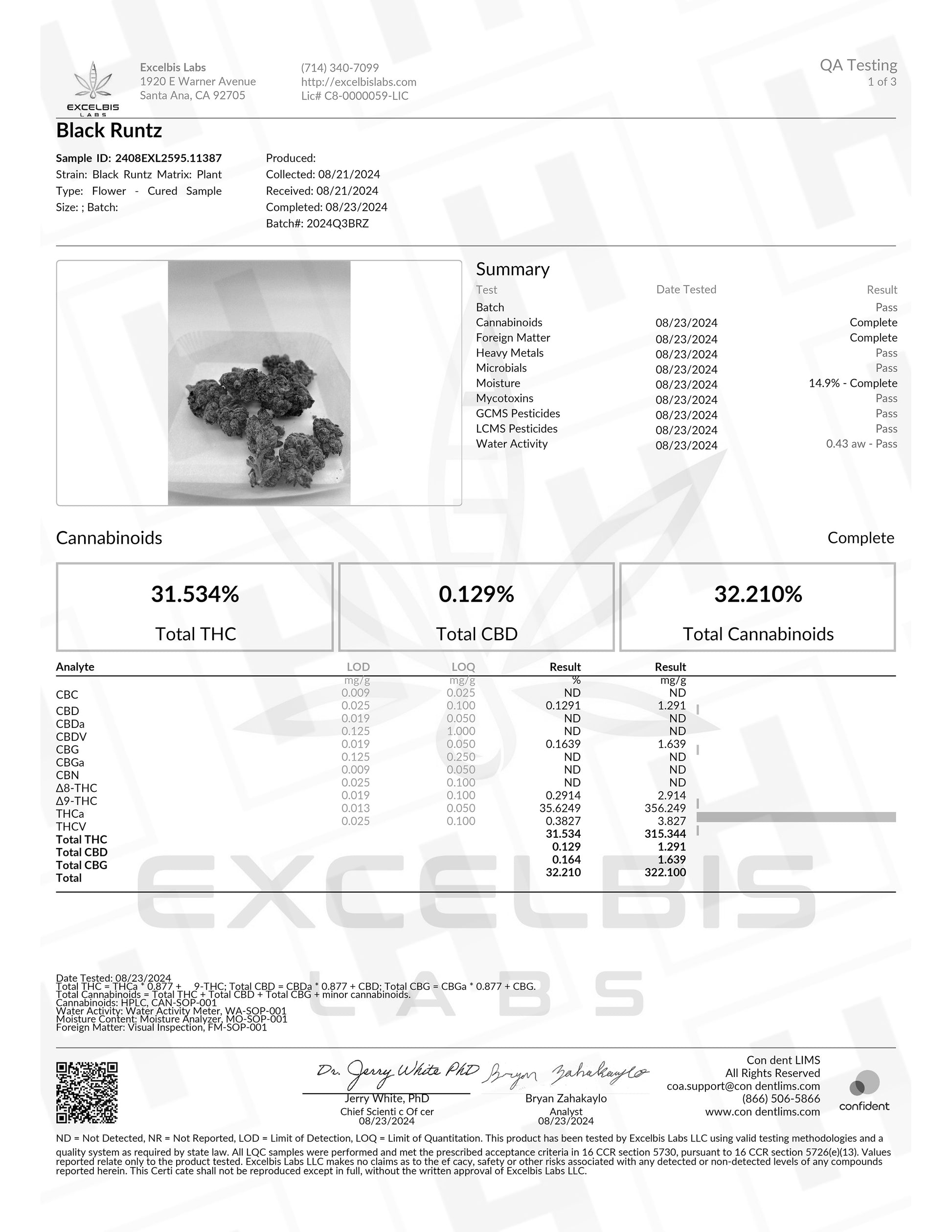THC: 31.534% | CBD: 0.129% | Total Cannabindoids: 32.210%